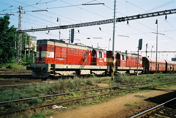 CD - Czech Republic Two diesel locomotives class 742 of the Czech Railways (with 742 219 leading) haul a heavy coal train in the direction of Domazlice. Plzen Jizni predmest - 12/02/2002
