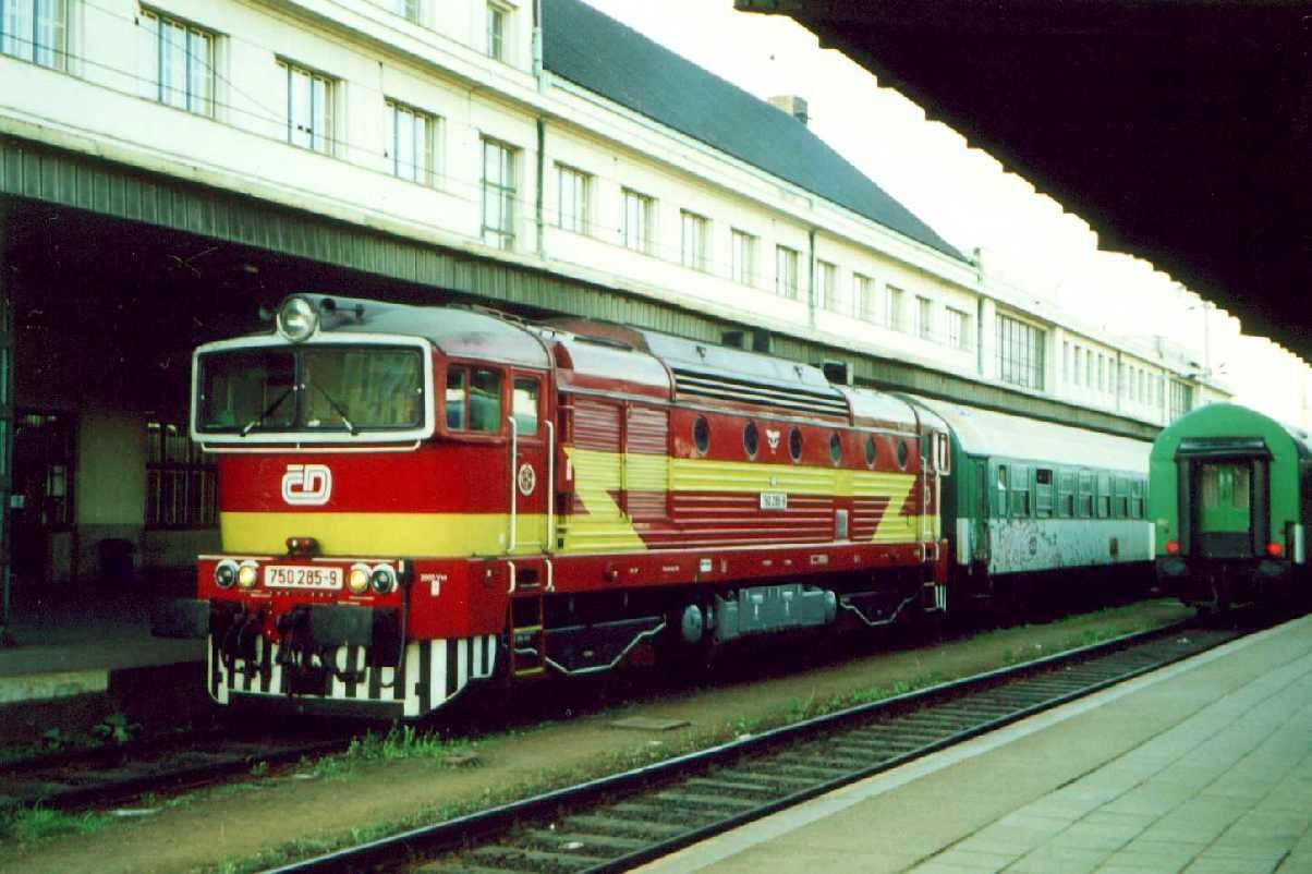 Class 750 Date: 8/4/2000 Nicely repainted unit 750 285-9 in the station Hradec Kralove. Photo and scan by: Michael Jancik