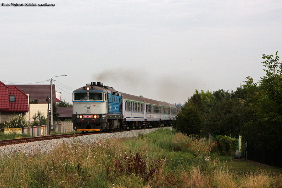 Ceske Drahy (CD) 754 046-1 with a fast TLK passenger train "Doker" Hel - Katowice 06.08.2014, track Kuznica - Chalupy Photo W. Kolins |