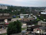 A class 754 is arriving at Brno hl.n., seen from the city hill, 6 May 2005