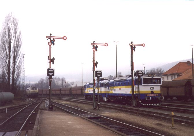 CD 754 class locomotive at station of Brno Hl. N. in April 1998. Photo and scan by Török Imre (toreny@gigant.sch.bme.hu) |