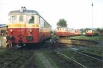 Ceske Drahy (CD) Motor coach class 831 Units (from left to right) 831 162-3, 831 168-0, 831 143-3 and 831 167-2 in depot Klatovy on 26.August 1996. Photo and scan by Petr Kaderávek (4kade@pol.upce.cz) |
