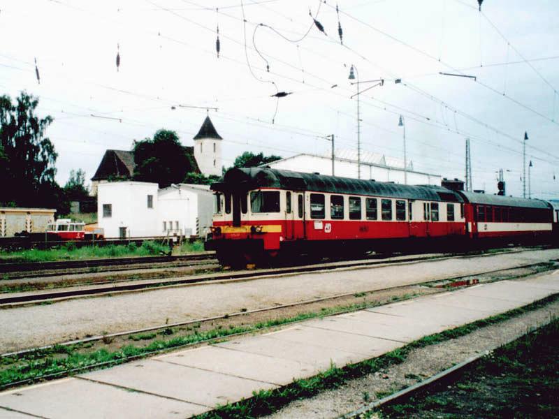 Unit 853 001-6 is standing in station Jicin. Taken on 10/9/2000.