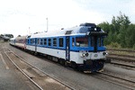 Unit 854 023-9 (reconstructed 853 023-0) on arrival at station Strakonice with fast