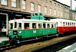 Historic railbus M120.437 with trailer, together with the M131.1405 with its trailer. When I saw the M120.137 from afar, I thought that it is an examination vehicle for overhead wires - but actually it is a passenger railbus with a small cab on the roof for the driver, which allows easy movement to both directions and gives the passengers an excellent view on the track.