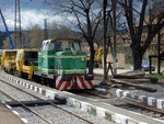 A small diesel shunter with number 92 54 2 710 682 - 6 of CD ( Ceske Drahy / Czech Railways ) standing near central railway station Stara Zagora with work train.