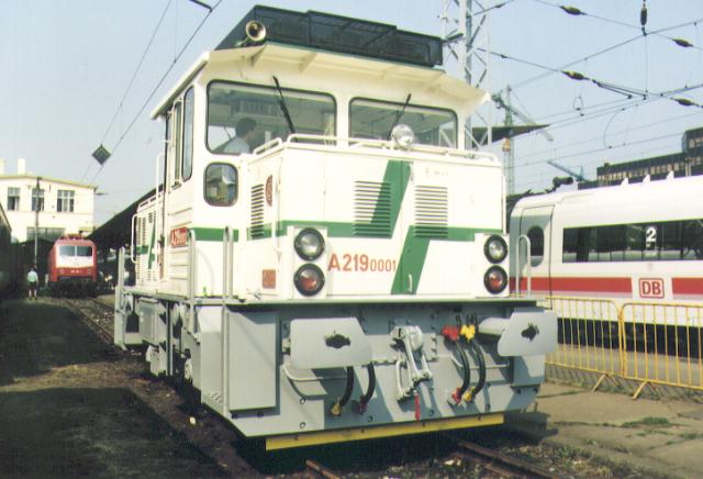 Ceske Drahy (CD) Battery locomotive class A 219.0 Unit A 219.0001 on exhibition in Praha on 22.August 1995. Photo and scan by Petr Kaderávek (4kade@pol.upce.cz) |