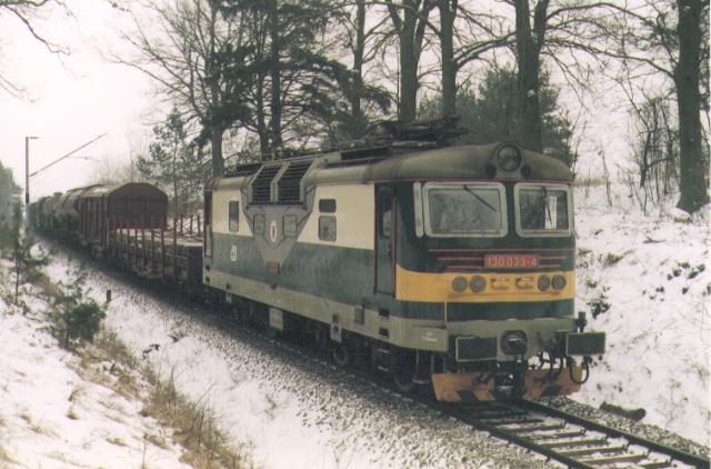 Ceske Drahy (CD) Electric locomotive class 130 Current system: 3 kV DC Unit 130 033-3 with freight train Pn 65012 Ceská Trebová-Ť -Hradec Králove between Blesno and Hradec Krá on 3.February 1996. Photo and scan by Petr Kaderávek (4kade@pol.upce.cz) |