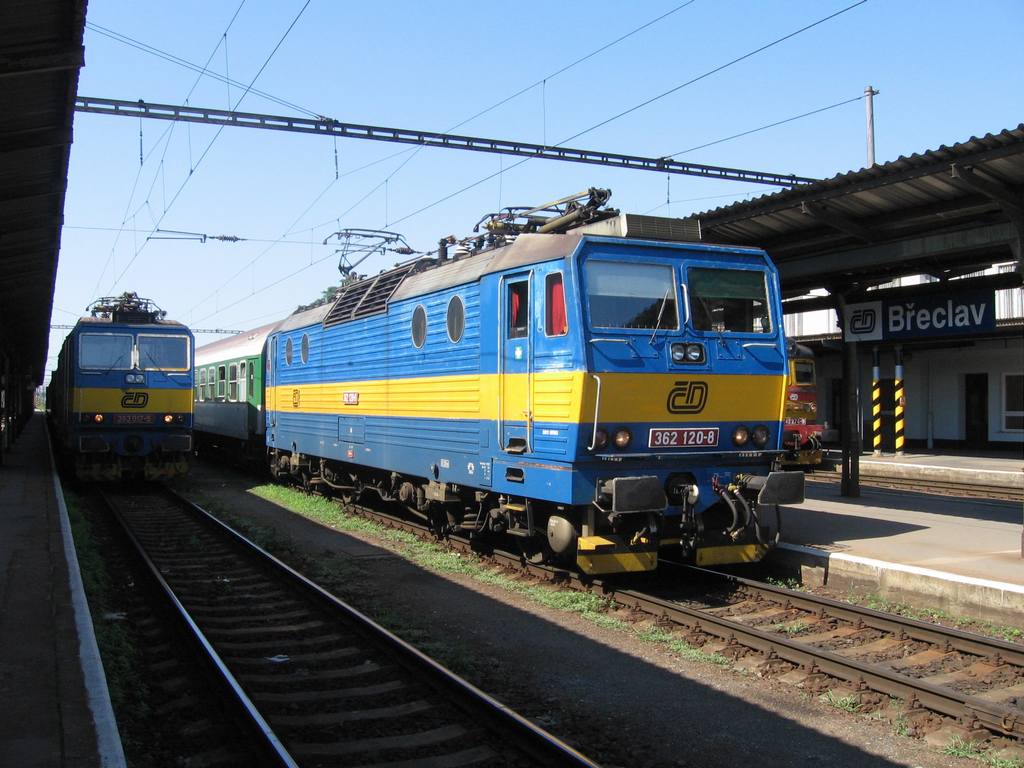 Breclav with the CD locomotive 362 122-4. The first two cars belong to the