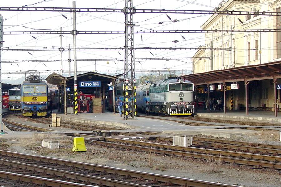 A railway station Brno hlavni nadrazi - the central railway station of Brno.A video movie about departuring the train , pulled by 263 001-0 , you can see on this adress: