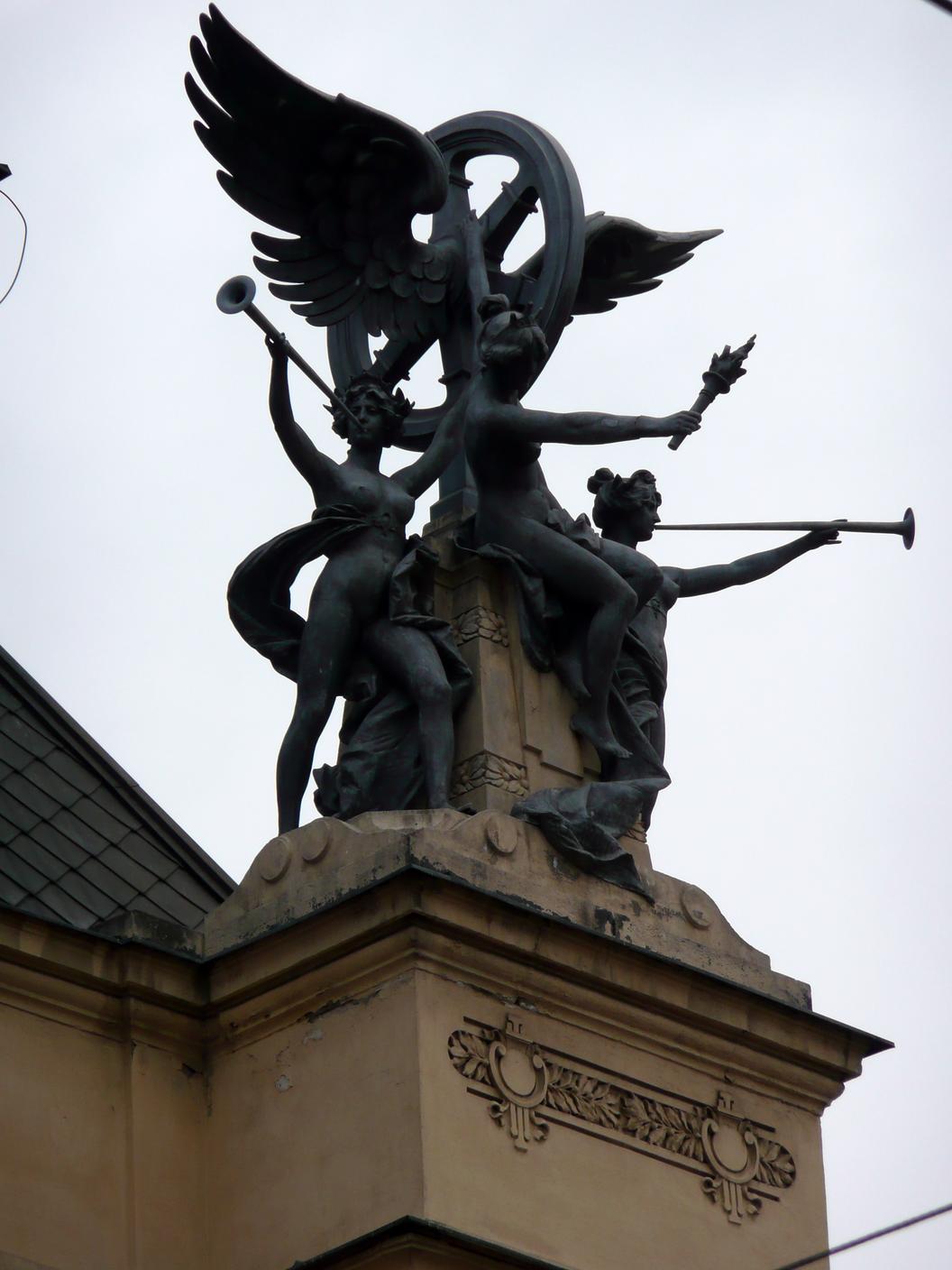 | Winged wheel statues at Brno hl.n. 2008-03-24. |