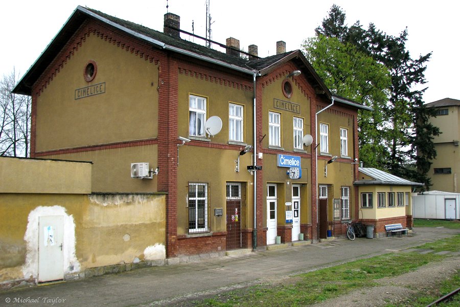 Cimelice station is an intermediate station on line 200 between Zdice and Protivín. Photographed from R1244 on Saturday, April 18th, 2009.
