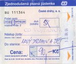 CD-ticket Otovice zastavka-Mezimesti, issued on the train 01.11.2002 Martin P.