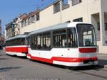 DPMB Brno (Czech Republic) trailer VV60LF Brno - end station Nove Sady, 22.08.2004 line no.10 The trailer VV60LF is the first trailer in modern history of public transport in the Czech republic. Itīs in testing working without passenger with tram T3 no.1531 (with passenger) on line no.10.