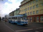 T3 tram in Liberec, approaching the stop Saldovo námestí.