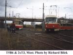 T5B6, No.273, Most, close to railway station, 1997 T5B6 prototype with T3 tramcar close to railway station Photographed by Richard Bilek, http://come.to/doprava |