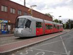 Tram in Praha, on the new line to Barrandov, at Chaplinovo Namesti