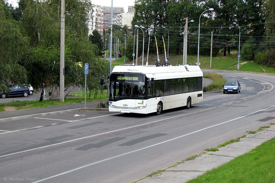 Chomutov. Solaris Trollino 12AC number 104 with a 33 service along Kamenná ulice on Friday September 7th, 2007.