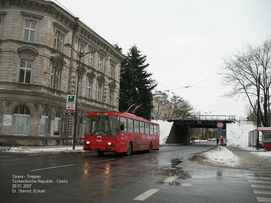 | IMG 4399 Opava - Troppau 28.01.07 O-Bus 81, Linie 201, kurz vor der HSt. DIvadlo, von wo er dann weiter nach Bílovecká fährt. Dr. Sternol, Eckart (Foto), Eckart.Sternol@bahn.de |
