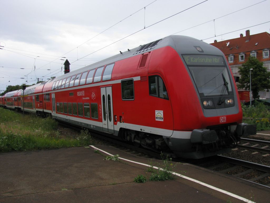 Ein Steuerwagen der Doppelstockserie fährt Bahnhof Duisburg ein, mit einen Zug