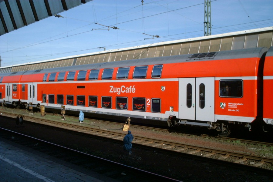 11 March 2002, Münster in Westfalen, Germany A zugcafé Dosto of a regionalexpress ready for departure in the station.