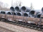 DB Cargo flat wagons, type Res687, loaded with steel wire coils