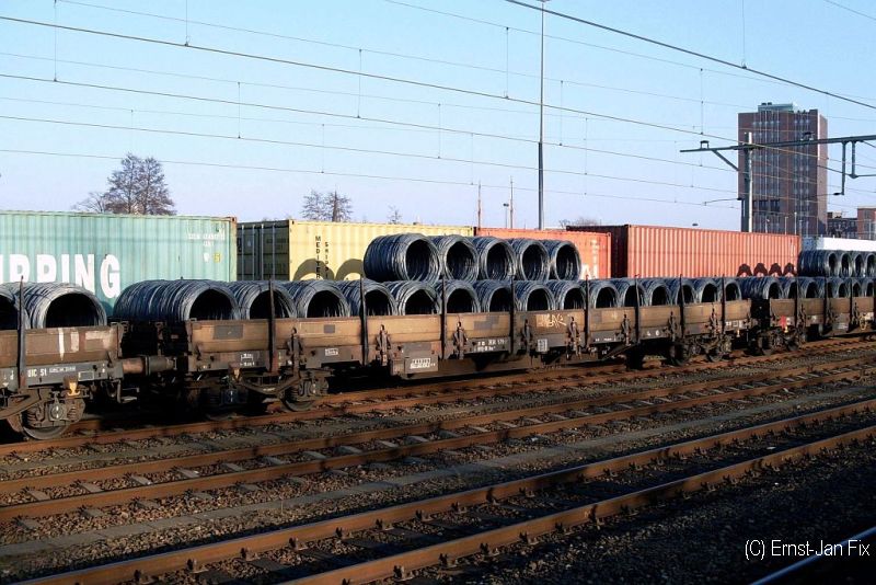 DB Cargo flat wagon, type Res687, loaded with steel wire coils