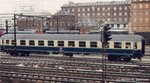 DB Couchette Bcmh 246 in a Holiday special, parked near Østerport station, Copenhagen in 1996. DB Liegewagen Bcmh 246 in einer Urlauberzug, abgestellt nahe Bahnhof Østerport, Kopenhagen 1996.