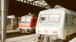 Two cab cars of the type Bybdzf in main train station Görlitz. Both cars stand at the end oft the train. The left train later drove to Dresden Hbf, that right to Cottbus. 2001-09-15