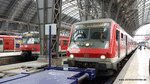 Two cab cars of the type Bybdzf in main train station Görlitz. Both cars stand at the end oft the train. The left train later drove to Dresden Hbf, that right to Cottbus. 2001-09-15
