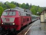 DB 218 148 on RB49 line (Wuppertal->Essen) reaches Velbert-Neviges at the first day of service for this station. 28. April 2003