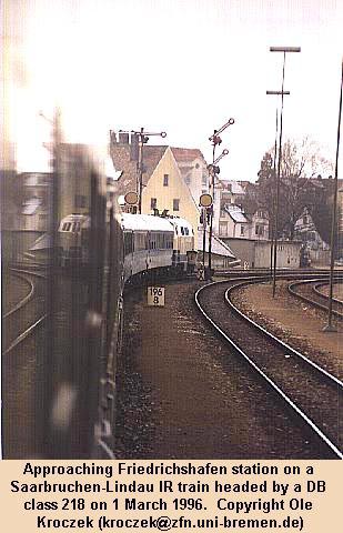 Friedrichshafen station at the head of a Saarbruchen-Lindau IR service on