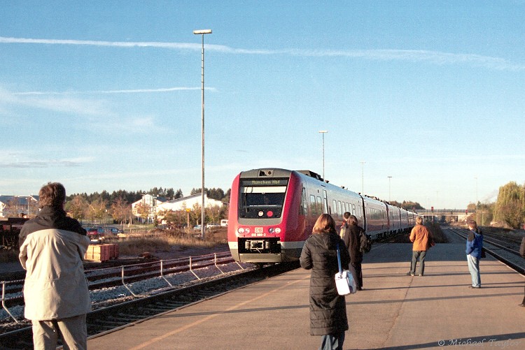 612 089-3 arrives at Kaufering with train RE21203 (07:00 Kempten to München Hbf) on Wednesday October 29th, 2003. The train was composed of 4 of these 2 car sets.