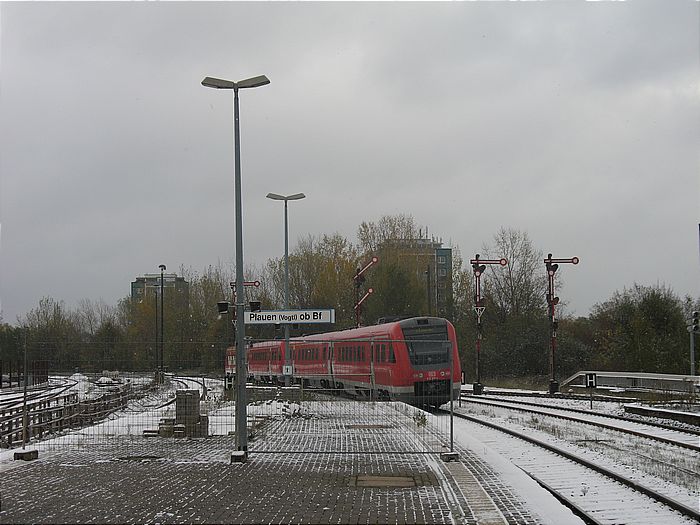 Plauen oberer Bahnhof Regionalexpress to Leipzig and Dresden is leaving the station 3.11.2006 Martin P.
