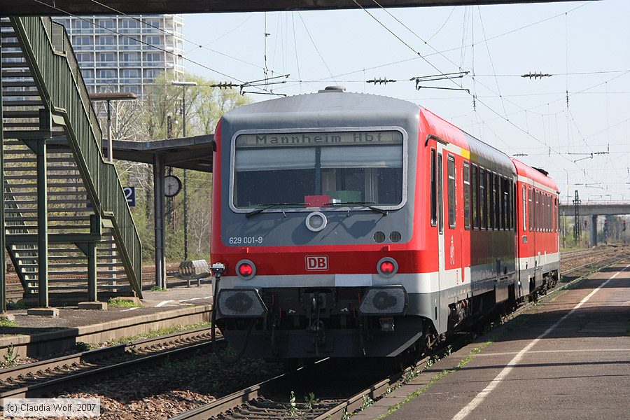 Deutsche Bahn - 629001-9 Triebwagen 629001-9 im Bahnhof Ludwigshafen Oggersheim am 06. April 2007.