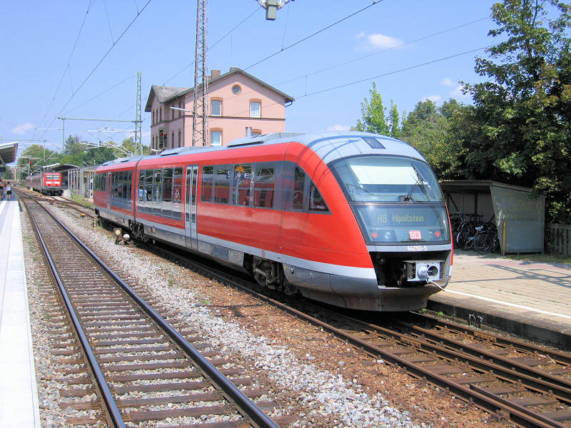 DBAG - Germany Desiro 642 113 is ready for a run over the branch line towards Hilpoltstein. In the back of the picture is an S-Bahn train towards Nürnberg. Roth, 20-07-2007 Digital photo by Marco van Uden |