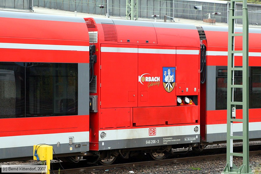 Deutsche Bahn - 646206-3 Triebwagen 646206-3 am 28. Oktober 2007 in Kassel Hauptbahnhof.