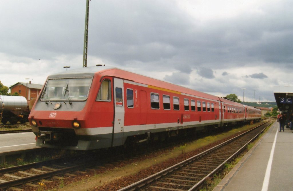 The DMU 610.014-3 leaving Marktredwitz as train RE 3054 on its way via Pegnitz to Nürnberg Hauptbahnhof. 2005-10-22