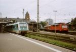 A new tilting-train of series 611 waits for departure to Heilbronn Hbf in Mannheim Hbf on October 6th, 1996.