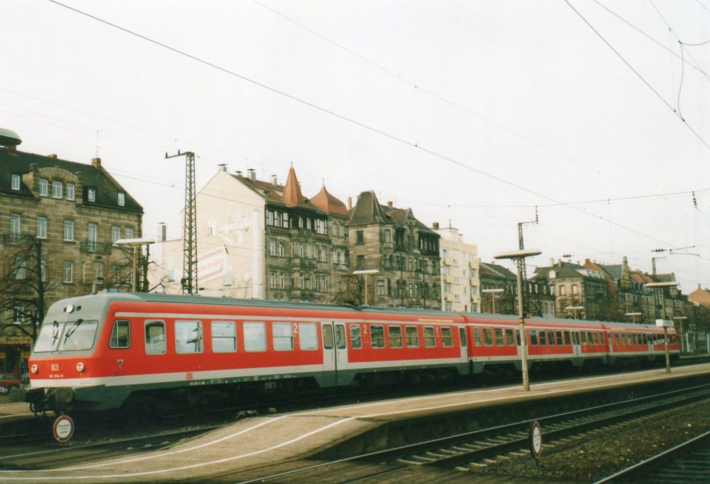 Unit 614 029-7 / 914 015-3 / 614 030-5 as express train 30513 Nürnberg-Neuhaus (Pegnitz) at the central railway station of Nürnberg on 14-8-2005. Photo and scan by Date Jan de Vries (email: datedevries@hotmail.com). |