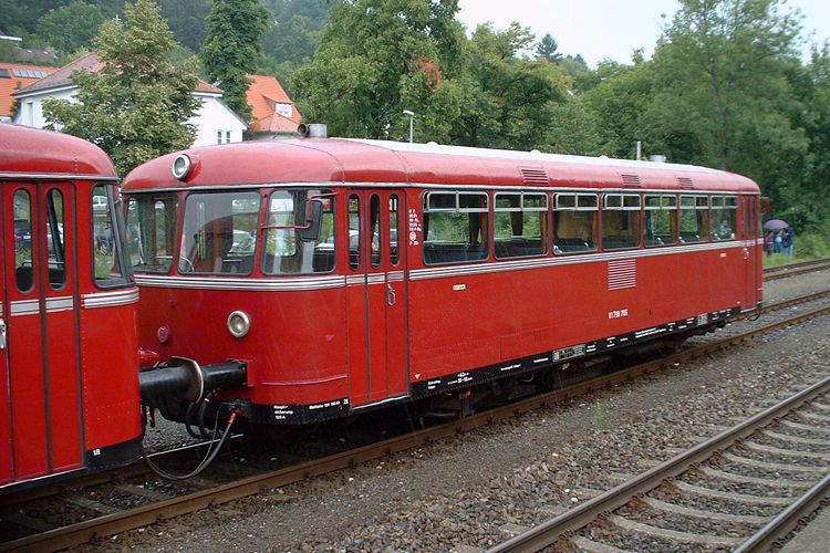 A DMU of class 798 appeared at the 125th anniversary of Pegnitztalbahn at Hersbruck on July 13th, 2002.