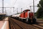 Diesel engine 295 061 with north- or east-bound freight train at Vienenburg station. Picture taken on 1998-07-15 or 1998-07-16 in Vienenburg.