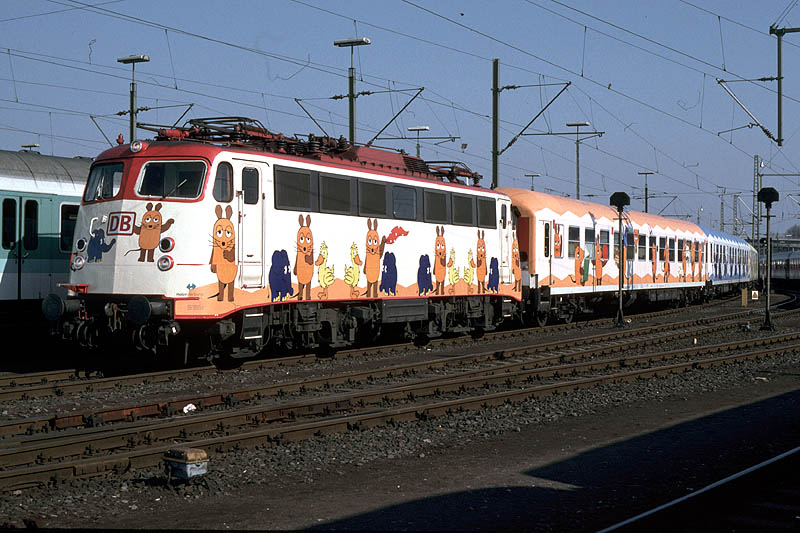 Im März 1996 fand das 25 jährige Jubiläum der ARD Fernsehsendung, Die Sendung mit der Maus statt.Zu diesem Anlaß wurde ein Sonderzug mit Lok und 3 Wagen kreiert, welcher 14 Tage lang durch zahlreiche deutsche Bahnhöfe verkehrte.