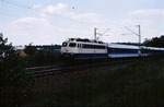 E-Lok der DB 110 296-1 am 30.05.1991 in Bruchsal-Nord vor IR Lindau-Saarbrücken (letzte Tage vor Eroeffnung der NBS)