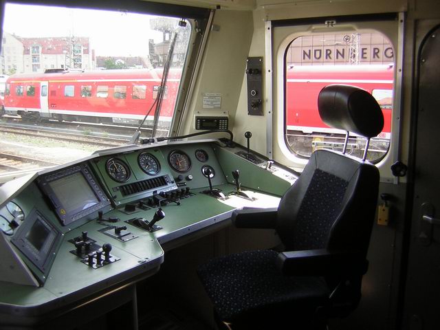 Führerstand einer Lok der Baureihe 111. Im Jahr 2005 hat Fis und GSM-R Funk einzug gehalten