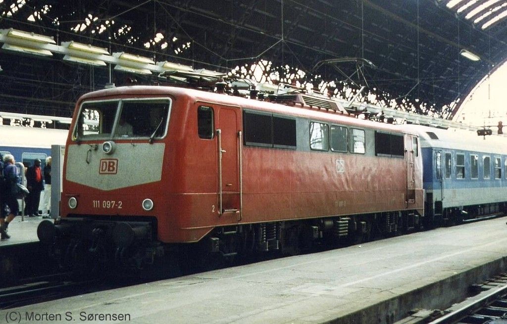 111 097-2 with an Interregio service, Frankfurt/M Central station 1997.