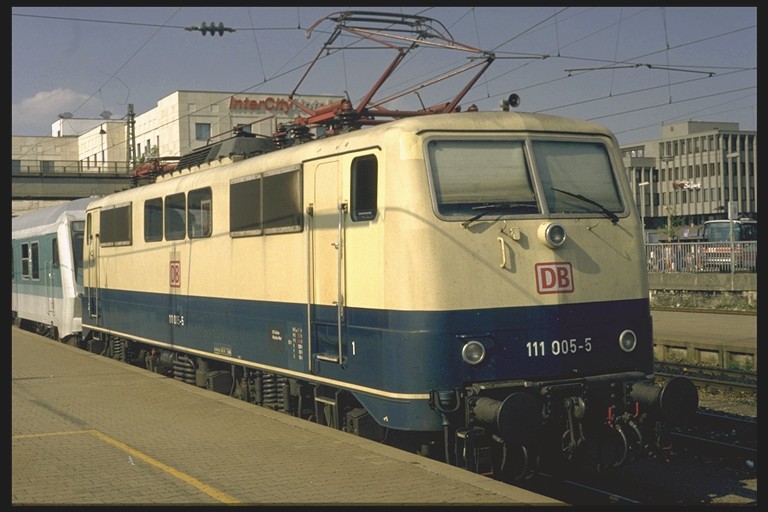Electric engine 111 005 seen in Ulm in August, 1995.