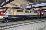 One of the lokomotives of the BR 111, the 111 106-7, with the Talgo Intercity-Night in