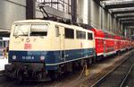 Electric engine 111 201 at Kiel Hbf station. Picture taken on 1998-08-03 in Kiel.