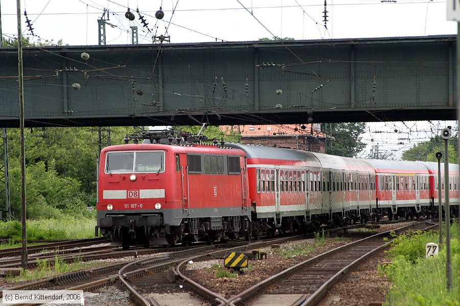 Deutsche Bahn - 111197-0 Lok 111197-0 beim Bahnhof Mannheim Friedrichsfeld, aufgenommen am 31. Mai 2006.